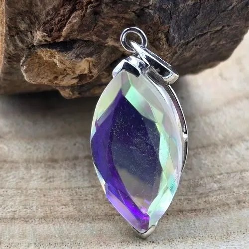 De basis van de steen is natuurlijke topaas, een mineraal dat bekend staat om zijn helderheid en zuiverheid. Door de verfijnde behandeling krijgt de hanger een unieke, bijna magische uitstraling die direct de aandacht trekt.