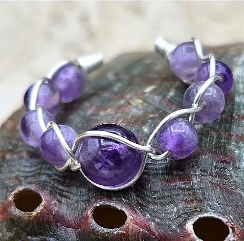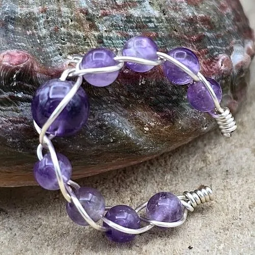 Deze handgemaakte verstelbare ring combineert de elegante uitstraling van amethist met een verfijnde zilverkleurige afwerking. De natuurlijke paarse tinten geven de ring een stijlvolle en tijdloze uitstraling.