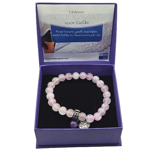 De combinatie van rozenkwarts en amethist maakt deze edelsteen armband bijzonder geschikt voor iedereen die meer balans en positieve energie wil ervaren. Dankzij het elastische ontwerp is de armband comfortabel om te dragen en passend voor de meeste polsen.