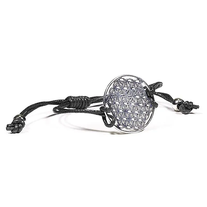 Dit zwarte katoenen armbandje is voorzien van het krachtige Bloem des Levens symbool. Een stijlvol en betekenisvol sieraad dat staat voor eenheid, harmonie en de verbinding van al het leven.