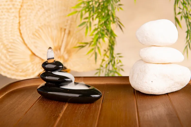 Breng een sfeer van rust en magie in je ruimte met deze bijzondere backflow-houder in de vorm van een set stenen. Speciaal ontworpen voor backflow-wierookkegels, laat deze houder de geurige rook als een zachte nevel van boven naar beneden stromen. Het fascinerende schouwspel werkt kalmerend, meditatief en nodigt uit tot verstilling.