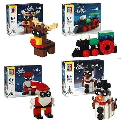 Compleet doosje met bouwblokjes (21-26 stuks) van stevig kunststof om leuke kerst figuren te bouwen zoals een kerstman, sneeuwpop, treintje etc. Klik de verschillende vormen in elkaar en zie hoe jouw kerstfiguurtje verschijnt. Inclusief bouwtekening en verpakt in een mooi doosje. Er zijn 4 verschillende kerst figuren dus ook een erg leuk spaarartikel. Supermooi cadeautje!