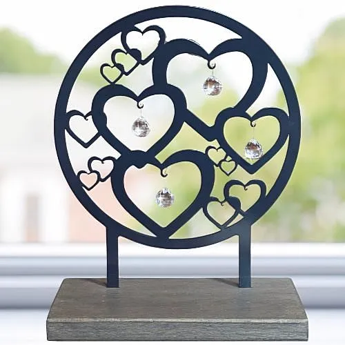 Door de open vormgeving en de hartjes krijgt het geheel een warme, liefdevolle uitstraling. Perfect om een dierbare te herdenken of om een bijzondere plek in huis te creëren.