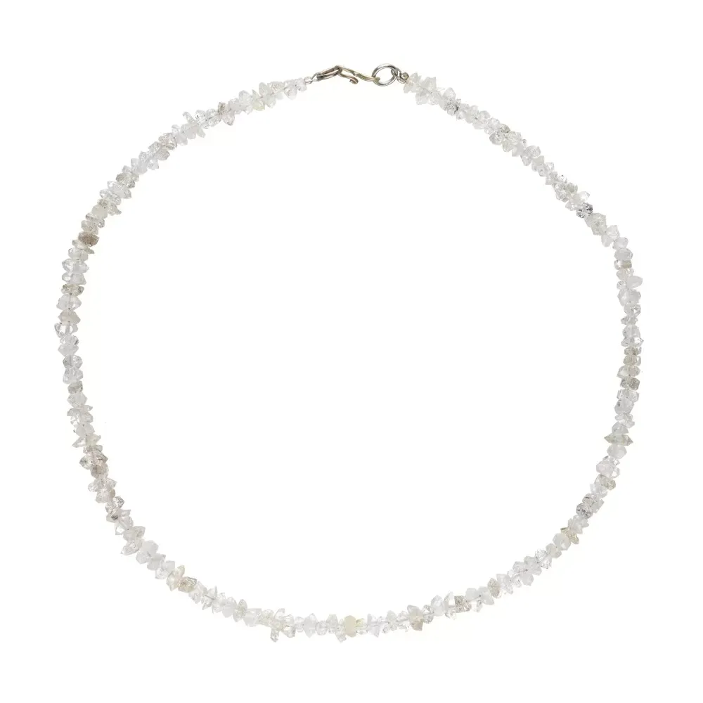 Dit verfijnde collier met Herkimer diamant heeft een subtiele en natuurlijke uitstraling. De kleine transparante steen staat bekend om zijn heldere energie en wordt vaak gebruikt ter ondersteuning van focus, bewustzijn en spirituele groei.