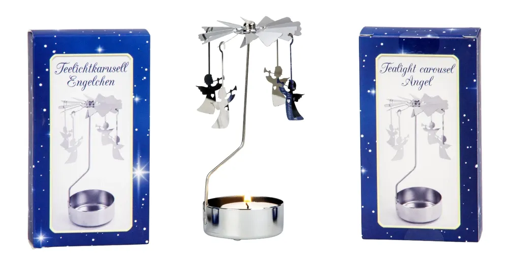 Creëer een magische sfeer in huis met de Engel Carousel, een draaibare theelichthouder van zilverkleurig metaal. Dankzij de warme gloed van het theelicht draait de aluminium carrousel zachtjes rond en brengen de engelen een rustgevende en feestelijke ambiance in elke ruimte.