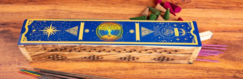 De Fantasie Wierookdoos Boom des Levens is gemaakt van mangohout, een duurzaam materiaal dat samen met het epoxyhars een robuste en afwasbare afwerking biedt. Het epoxyhars blijft helder en glanzend, zelfs na veelvuldig gebruik, waardoor de magische symbolen hun betoverende uitstraling behouden. De doos heeft voldoende opbergruimte voor jouw favoriete wierookstokjes en -cones, en de bovenkant is ontworpen om als wierookhouder te functioneren.