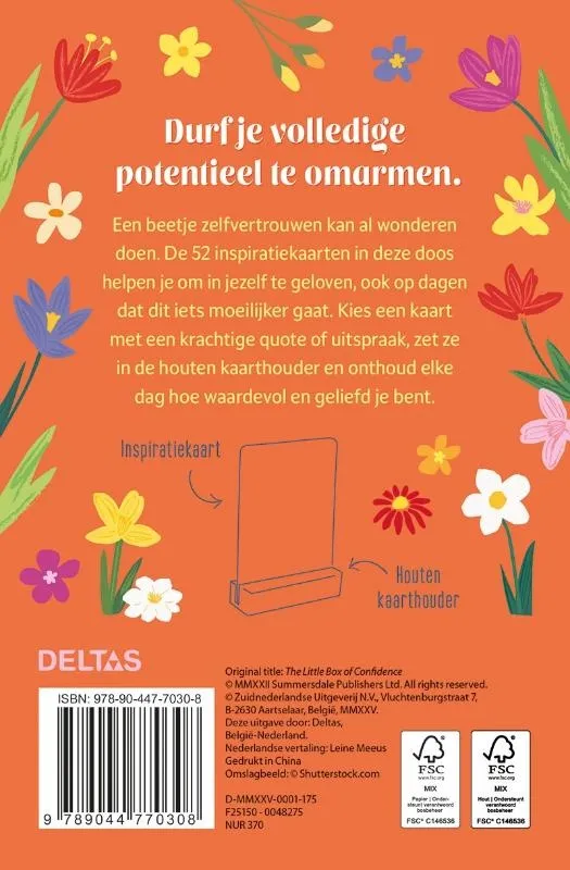 Geef jezelf een dagelijkse boost met de Geloof in jezelf! inspiratiekaarten. Deze set bevat 52 kaarten met krachtige quotes en uitspraken die je helpen om in jezelf te geloven, zelfs op dagen dat het wat moeilijker gaat. Zet de kaarten in de bijgeleverde houten kaarthouder en laat elke dag een nieuwe boodschap je eraan herinneren hoe waardevol en geliefd je bent.