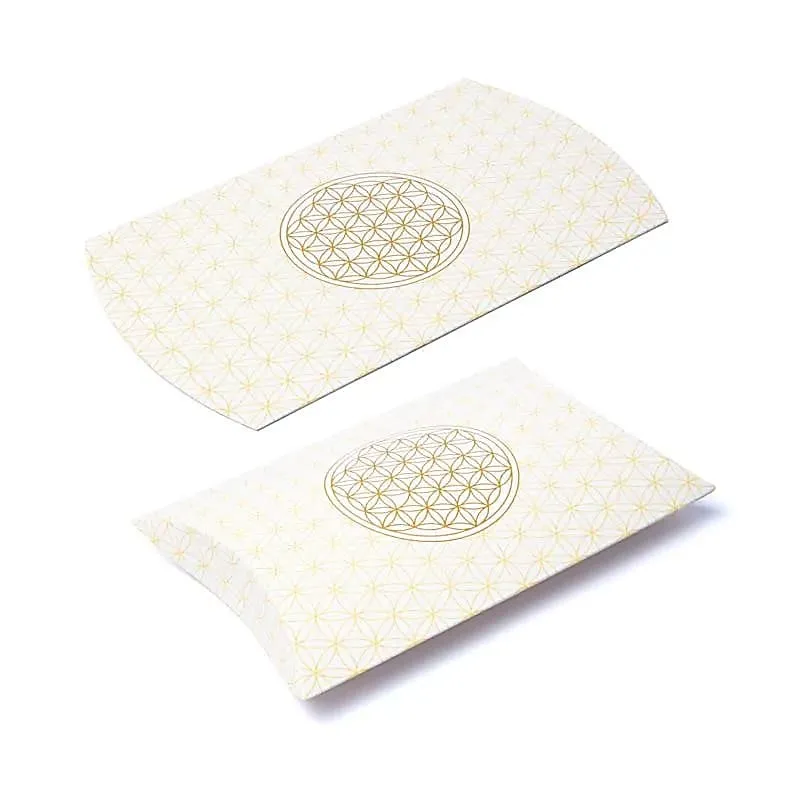 Geef je cadeau een luxe en betekenisvolle uitstraling met dit elegante gondeldoosje in wit met gouden Bloem des Levens. De sierlijke vorm en het subtiele design maken dit doosje perfect voor het stijlvol verpakken van kleine geschenken.
