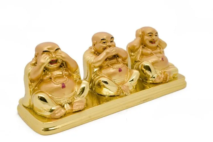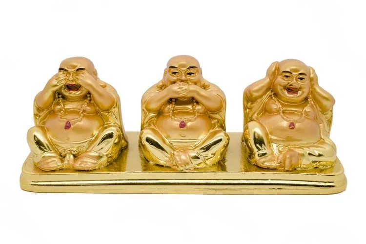 Breng een krachtige combinatie van geluk, wijsheid en harmonie in huis met dit prachtige Gouden Boeddha trio. Deze drie lachende Boeddha’s in de bekende “horen, zien en zwijgen” houding vormen samen een betekenisvol en sfeervol geheel.