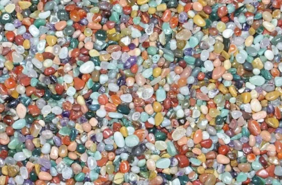 Deze zorgvuldig samengestelde mix bevat stenen zoals Amethist, Bergkristal, Rozenkwarts, Gele Jaspis, Rode Aventurijn, Rode Jaspis, Groene Aventurijn, Moosagaat, Agaat, Carneool, Grijs Sardonyx en meer. Elk steentje is natuurlijk en uniek, waardoor geen enkele mix hetzelfde is.