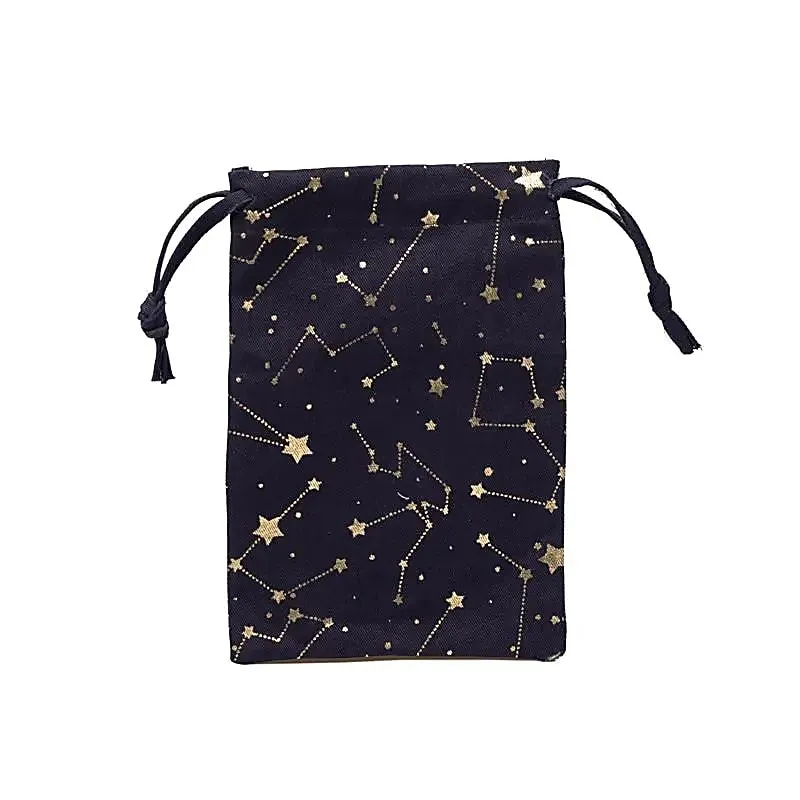 Dit katoenen opbergzakje met horoscoopdesign is gemaakt van biologisch textiel en voorzien van een praktisch trekkoord. Ideaal voor het bewaren van sieraden, edelstenen, tarotkaarten of kleine spirituele accessoires.
