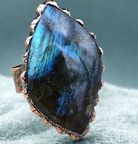 Een opvallende en karaktervolle ring met natuurlijke labradoriet – perfect voor liefhebbers van unieke en spirituele sieraden. ✨