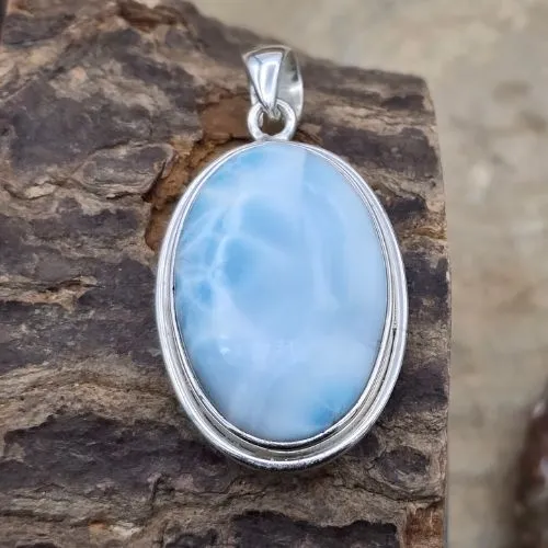 Elke Larimar hanger is uniek in kleur, tekening en vorm. Afbeeldingen zijn indicatief; het product dat je ontvangt kan hiervan afwijken.