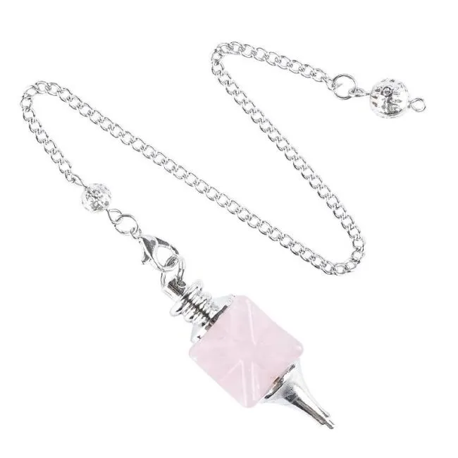 Deze natuurstenen pendel van rozenkwarts is gesneden in de vorm van een Merkaba, een krachtig symbool uit de heilige geometrie. De Merkaba bestaat uit twee in elkaar verweven tetraëders en wordt traditioneel geassocieerd met het in balans brengen van energieën en polariteiten. De zachte roze kleur geeft de pendel een rustige en harmonieuze uitstraling.
