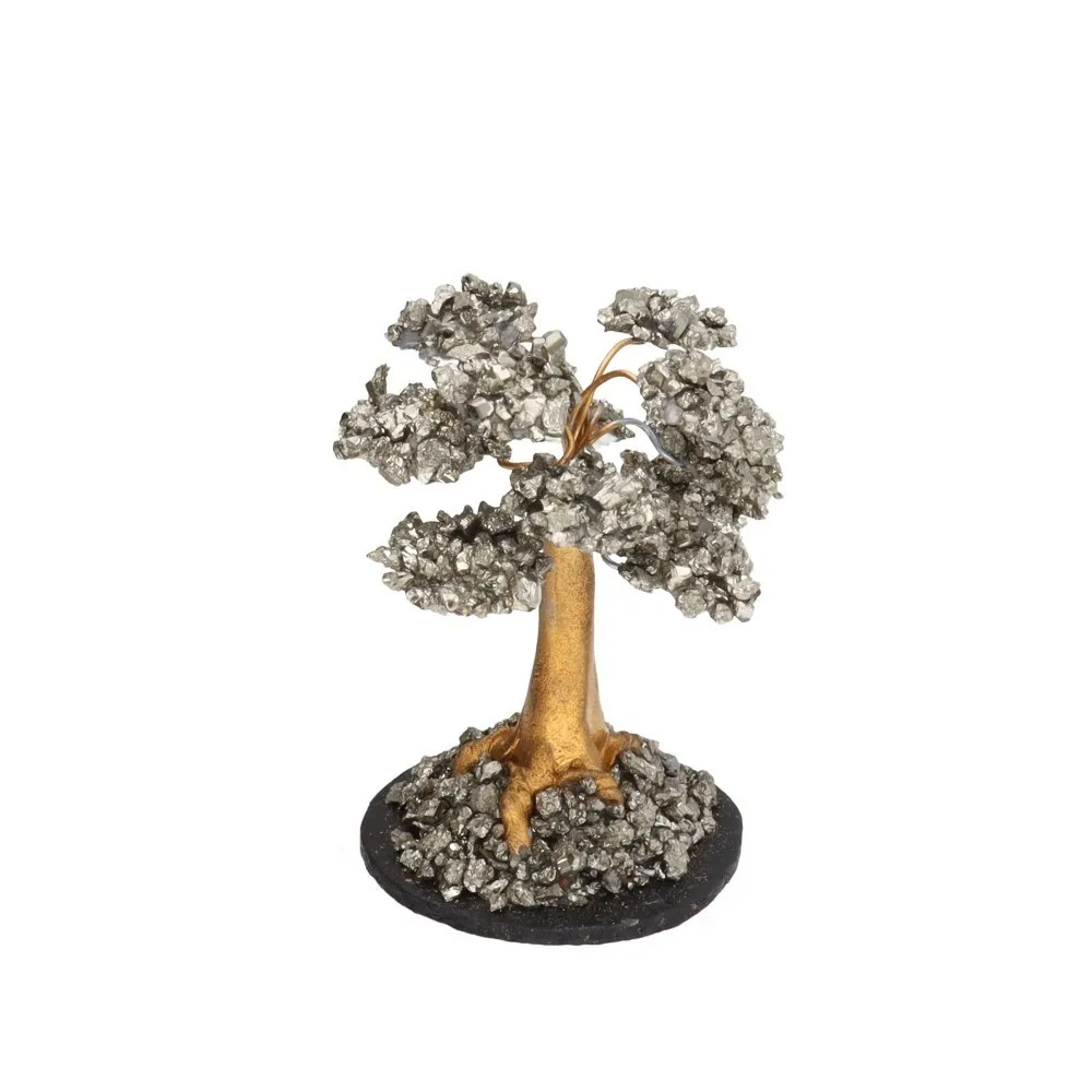 Voeg een vleugje natuurlijke energie, welvaart en bescherming toe aan je interieur met de Mini Pyrietboom met Pyrietvoet – een stijlvol, betekenisvol en spiritueel accessoire.