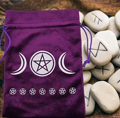 Dit paarse fluwelen trekkoord zakje met Triple Moon en pentagram heeft een mystieke en spirituele uitstraling. De diepe paarse kleur staat vaak symbool voor spiritualiteit, intuïtie en transformatie.