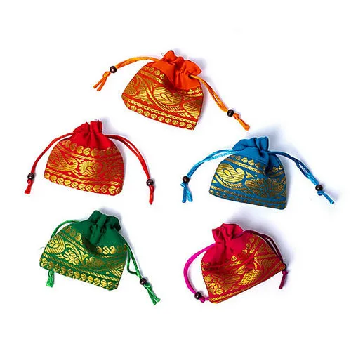 De tasjes worden geleverd in 5 verschillende kleuren brokaatstof en assorti verzonden, wat elk zakje een unieke uitstraling geeft. Dankzij het compacte formaat neem je het eenvoudig overal mee naartoe.