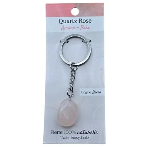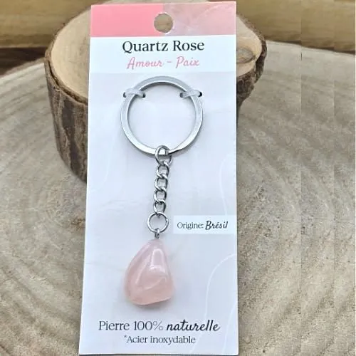De rozenkwarts in deze sleutelhanger is afkomstig uit Brazilië en is een puur natuurproduct. Hierdoor is elke steen uniek in tint, vorm en structuur. Kleine variaties horen bij de natuurlijke eigenschappen van rozenkwarts en maken elke sleutelhanger bijzonder en authentiek.
