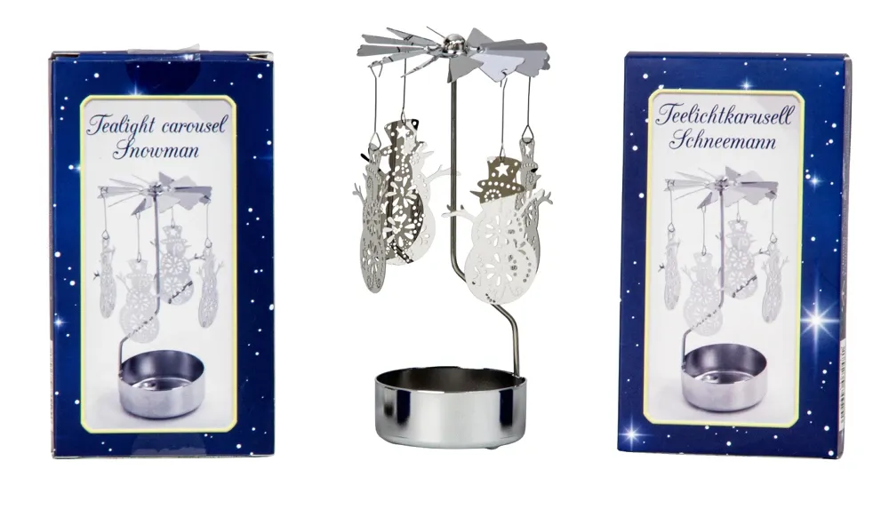 Creëer een magische sfeer in huis met de sneeuwpop Carousel, een draaibare theelichthouder van zilverkleurig metaal. Dankzij de warme gloed van het theelicht draait de aluminium carrousel zachtjes rond en brengen de engelen een rustgevende en feestelijke ambiance in elke ruimte.