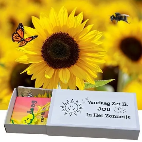 De zonnebloem staat symbool voor warmte, geluk en licht, en herinnert ons eraan om te focussen op het positieve in het leven. Zo wordt dit doosje niet alleen een attent cadeau, maar ook een betekenisvol gebaar.