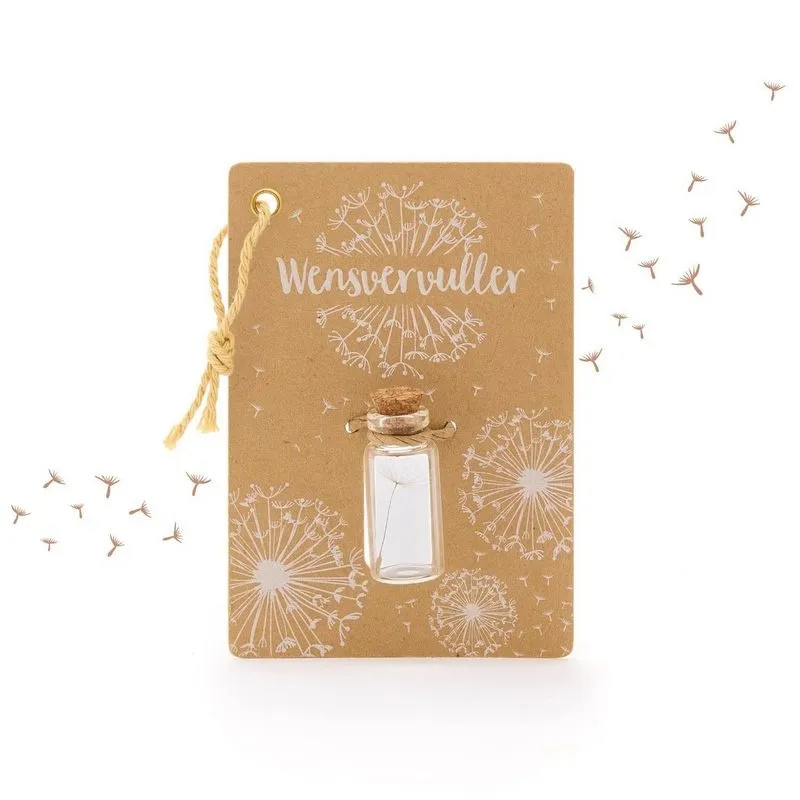 Ontdek het unieke Klein Wenspotje met een echt paardebloem-pluisje, zorgvuldig bewaard in glas. Dit bijzondere en handgemaakte cadeau staat symbool voor hoop, dromen en wensen die mogen uitkomen. Een klein, betekenisvol geschenk waarmee je iemand laat weten dat je aan ze denkt.