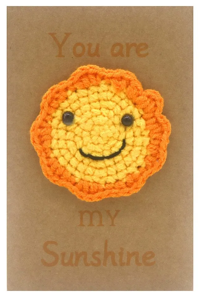 Ontdek de kracht van liefde en positiviteit met deze handgemaakte cadeaukaart van 14 x 9,5 cm. De kaart is voorzien van een gebreide zon, een symbool van warmte en licht, perfect om een glimlach op iemands gezicht te toveren. Het ontwerp straalt positieve energie uit en maakt deze kaart een bijzonder cadeau voor elke gelegenheid.